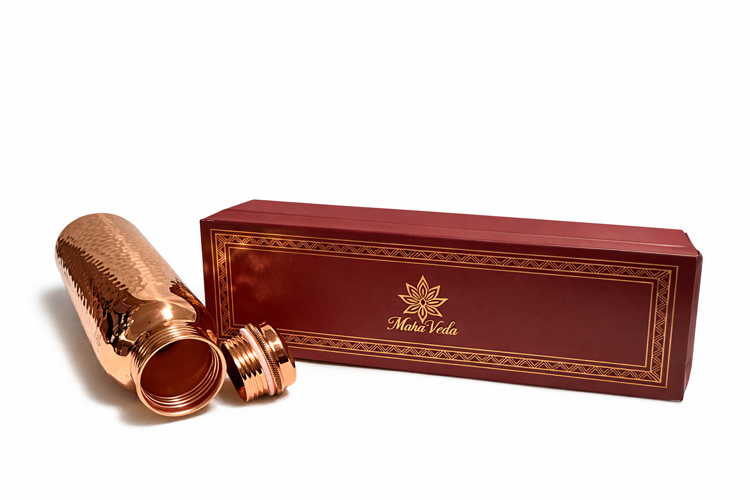 Bring home the timeless benefits of Ayurveda with the MiraVeda Pure Copper Hammered Water Bottle. Crafted from 100% pure copper with a beautiful hammered finish, this bottle is designed to naturally purify your drinking water while adding an elegant, premium touch to your daily routine.